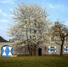 De groene omgeving met de prachtige carré hoeve van de stichting Modus in Swalmen vormt het decor van Art in the Yard.